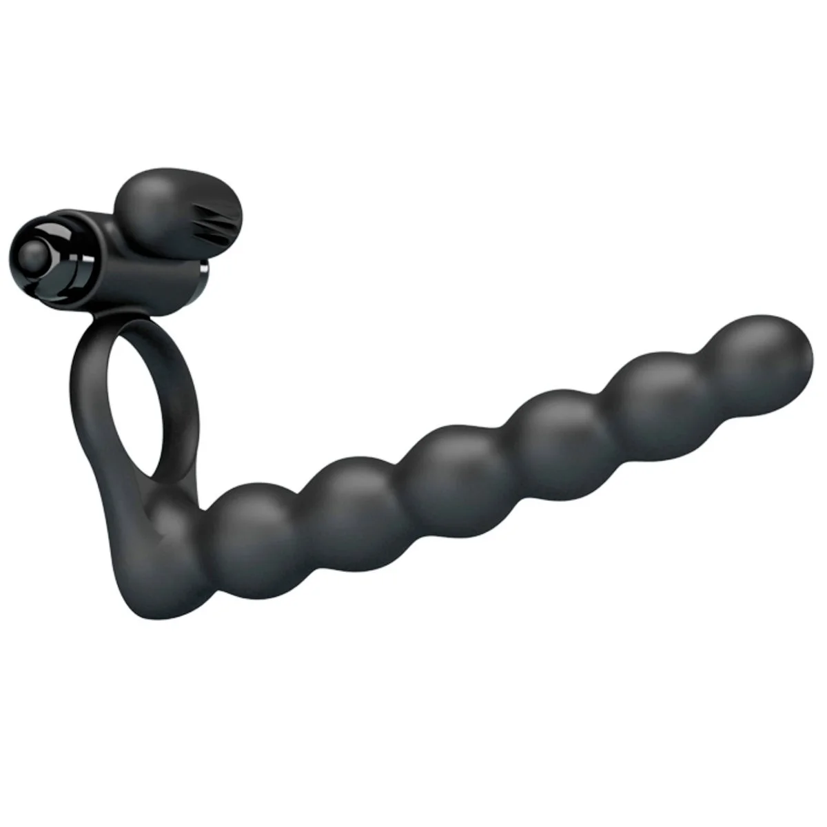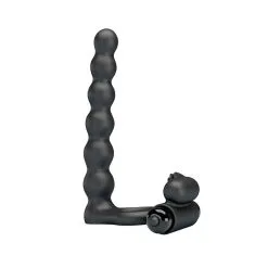 La double pénétration est également à l’honneur puisqu’un chapelet anal y est aussi relié avec des boules stimulantes de différents diamètres.