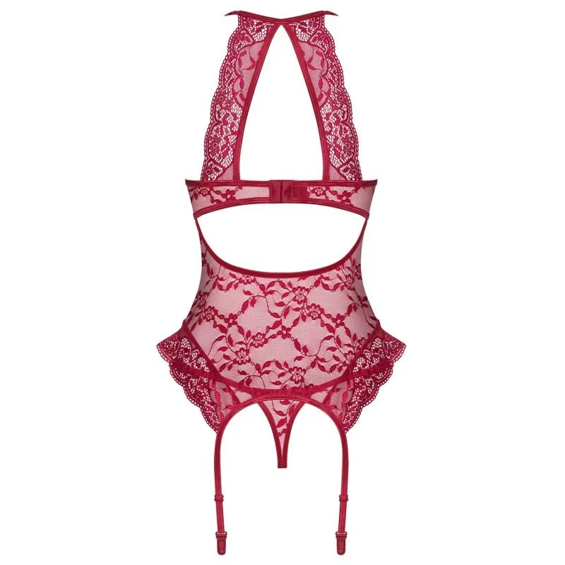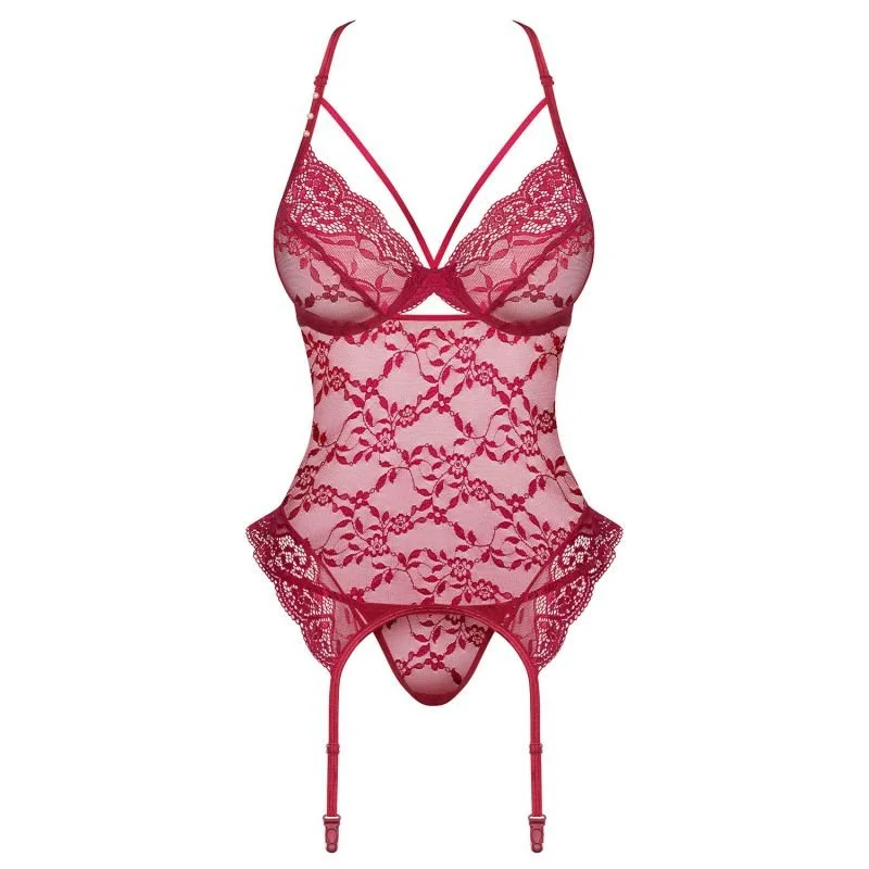 De face, la dentelle avec son séduisant motif floral orne votre poitrine et vos hanches.