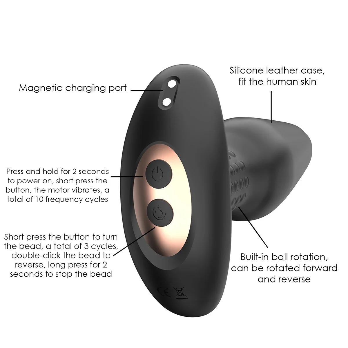 Bruce vous réserve une autre surprise ! Il possÚde à sa base une série de billes internes et rotatives qui viendront directement vous stimuler par vagues.