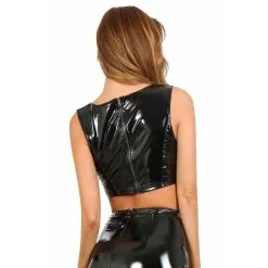 Ce top brassière en vinyle possède une découpe à l’avant qui le rend vraiment original. Une large ouverture met le décolleté en valeur.